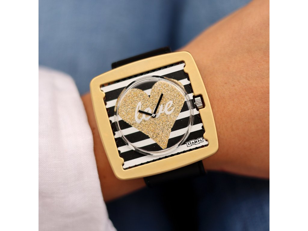 Set ciferníčku GOLDEN LOVE, řemínku STAMPSTEXX, BLACK a rámečku FUMJ GOLD MATT