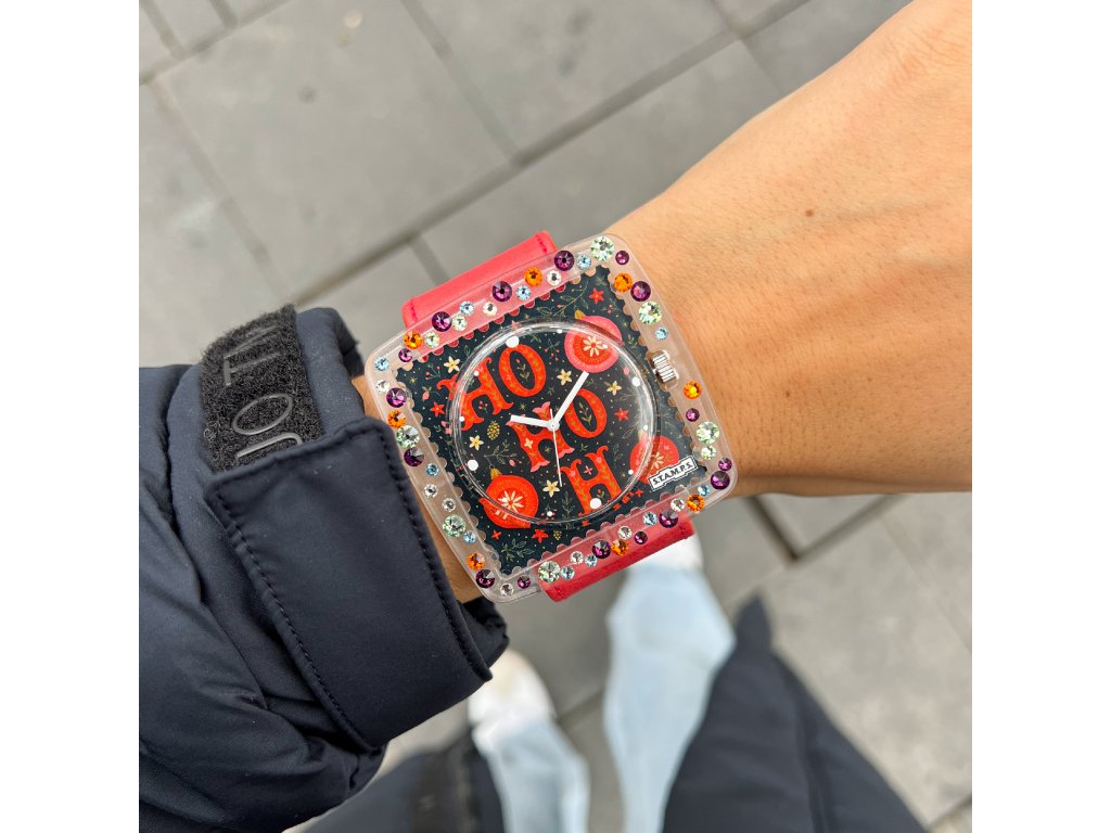 Set ciferníčku X-MAS HO HO HO, řemínku STAMPSTEXX, POPPY RED a rámečku COOL JACK, TRANSPARENT COLORFULLY